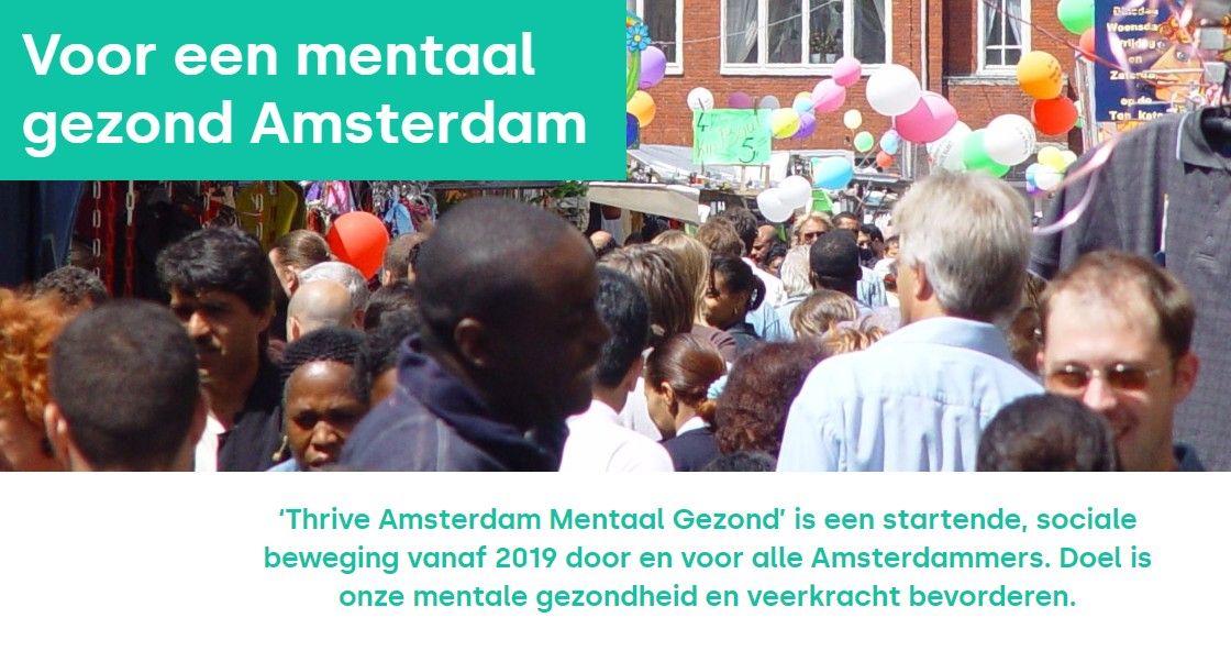 Echt luisteren Wanneer een psychiater een gedwongen behandeling adviseert, moet de burgemeester de bewuste persoon laten ‘horen’ (‘hoorplicht’). Cliëntenbelang Amsterdam benadrukte dat voorkomen moet worden dat het werk van de psychiater overnieuw wordt gedaan. Dus geen lijstjes afvinken, maar echt luisteren naar iemand. Ze stelden voor om voor het uitvoeren van de hoorplicht ervaringsdeskundigen in te zetten. De werkgroepleden waren onder de indruk van deze en andere adviezen van Cliëntenbelang Amsterdam. Mentale gezondheid bespreekbaar maken Een ander project in 2019 was ‘Thrive’, het Engelse woord voor bloeien, floreren. In Amsterdam zijn verschillende partijen aangehaakt bij deze mondiale beweging om mentale gezondheid bespreekbaar te maken. Het leven in een grote stad brengt extra stress met zich mee waardoor iemands mentale gezondheid onder druk kan komen te staan. Cliëntenbelang Amsterdam is bij dit project onze ‘partner in crime’. Zij adviseren en dragen mensen aan die rolmodel kunnen zijn. We willen uitdragen dat psychische problemen bij het leven horen, en dat iemand daar in een bepaalde fase van zijn of haar leven last van kan hebben. Ik herken dat, want ik heb ooit een psychose gehad. Ik bedoel maar: je kunt iets hebben, maar je kunt er ook van genezen. Je hoeft niet altijd meteen naar een hulpverlener. Het helpt als andere mensen je steun bieden, als ze de indruk hebben dat het niet goed met je gaat. Dat kan alleen als er geen stigma is rondom mentale gezondheid.”
